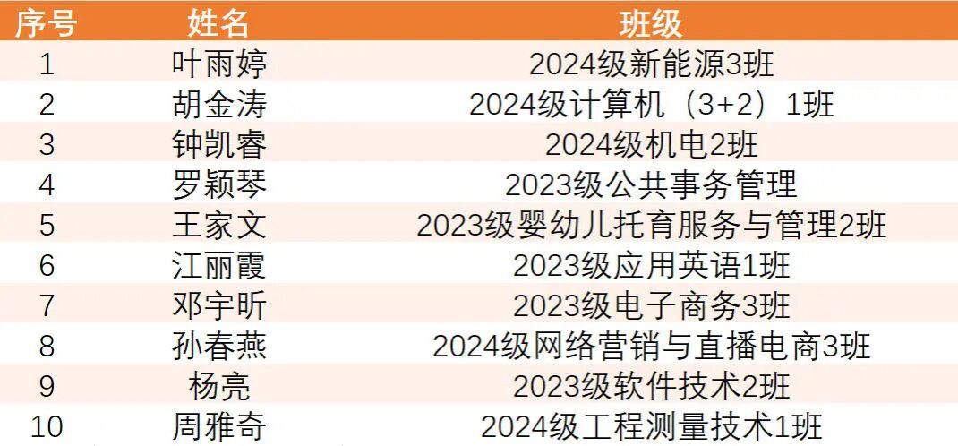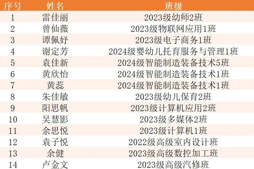 近日,教育部、人力资源社会保障部相继发布《教育部关于2024—2025学年度本专科生国家奖学金获奖学生名单的公告》及《教育部 人力资源社会保障部关于2024—2025学年度中等职业教育国家奖学金获奖学生名单的公告》。学校共有24名学子经过严格选拔,凭借优异的综合素养和突出的成长实绩脱颖而出,荣获该项国家级荣誉。其中,高职学生10名,中职学生14名。