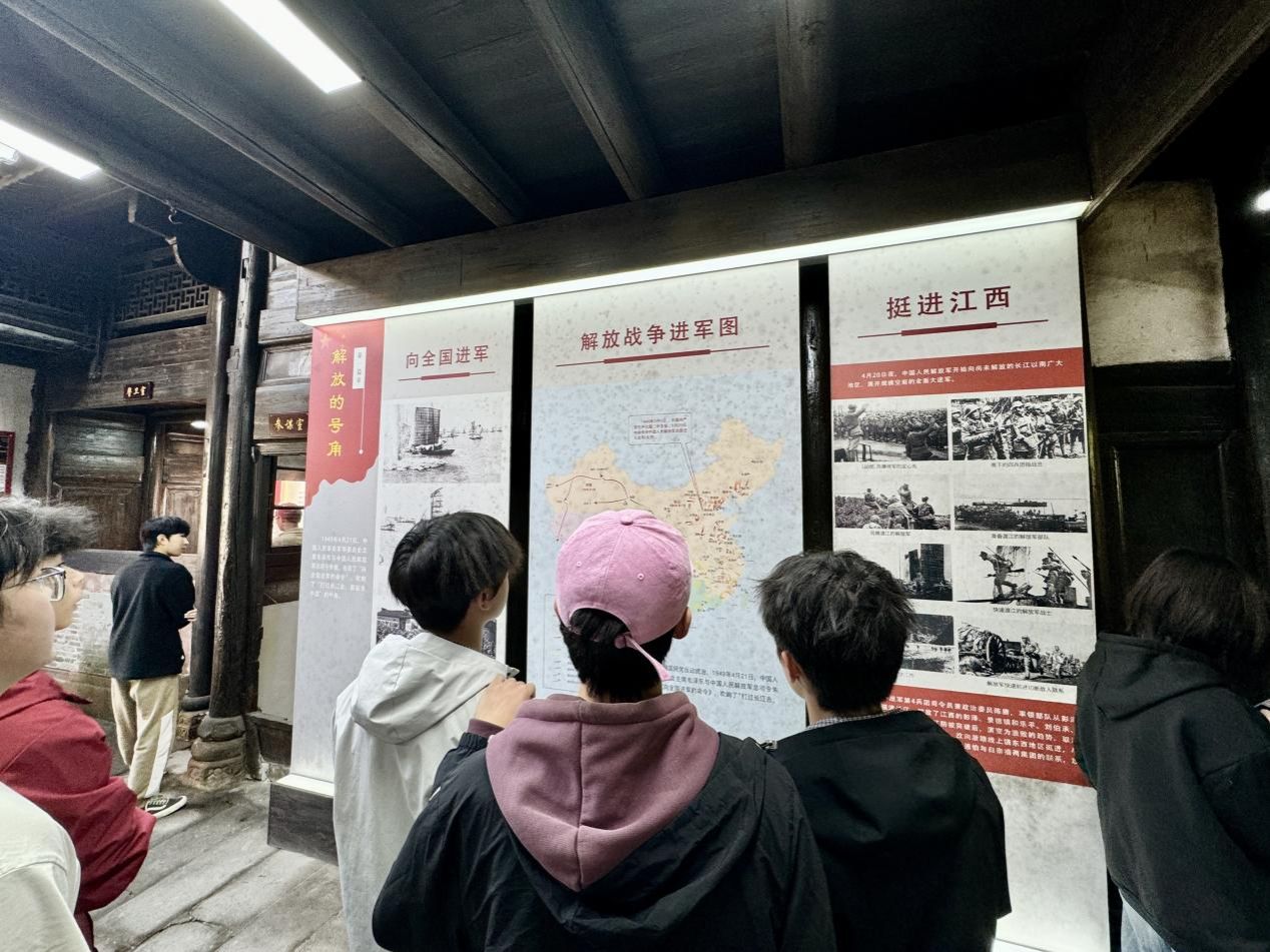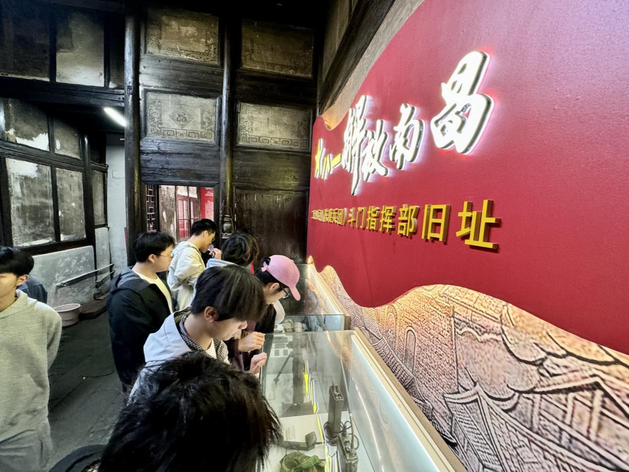 在旧址专业讲解员的引导下,全体学生入党积极分子、团员代表怀着无比崇敬的心情,有序参观了作战指挥室、历史陈列馆、机要室等核心功能区域。大家驻足在一幅幅定格历史瞬间的珍贵照片、一件件承载烽火记忆的革命文物、一份份还原决胜时刻的史料手稿前,认真聆听陈赓将军率领第二野战军第四兵团解放南昌的光辉战斗历程,深入学习作为解放南昌关键一役的谢埠之战的历史背景、战斗经过与重大意义,细致了解陈赓兵团在斗门村设立前线指挥部、运筹决胜的革命往事。